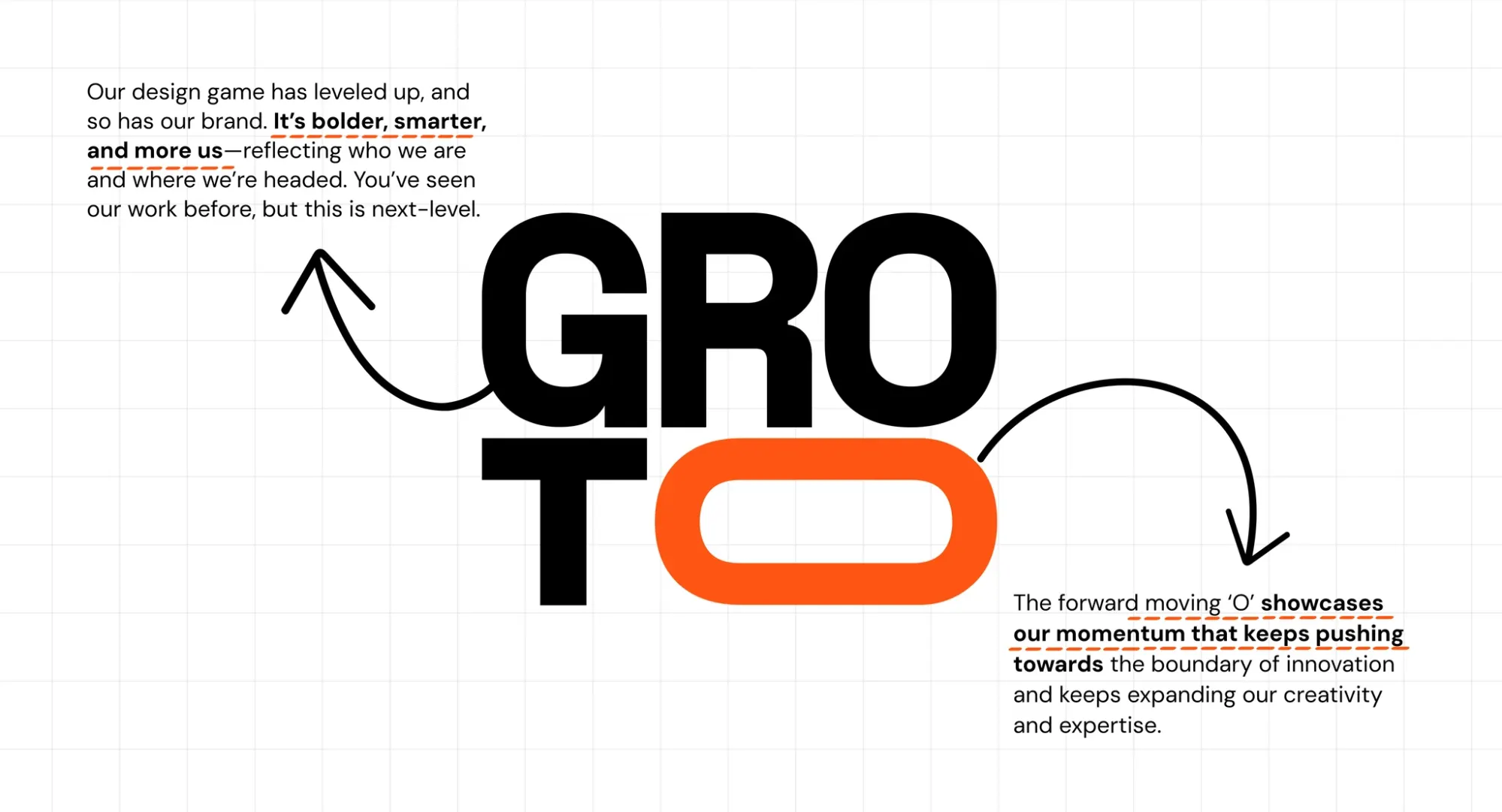 This was true for Groto: when we rebranded in 2024, we had grown from an execution-focused UX studio into a full-service design agency. Our original black-and-white logo was built for speed, not for where we were headed. The rebrand was not about aesthetics — it was about honest representation.