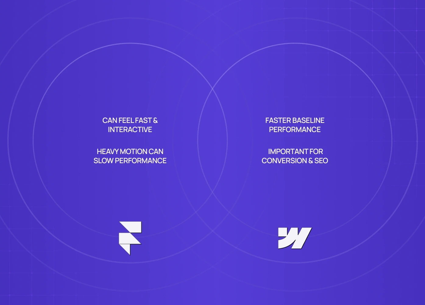 Framer’s sites can feel fast and interactive, but heavy motion can slow perceived performance if not optimized.